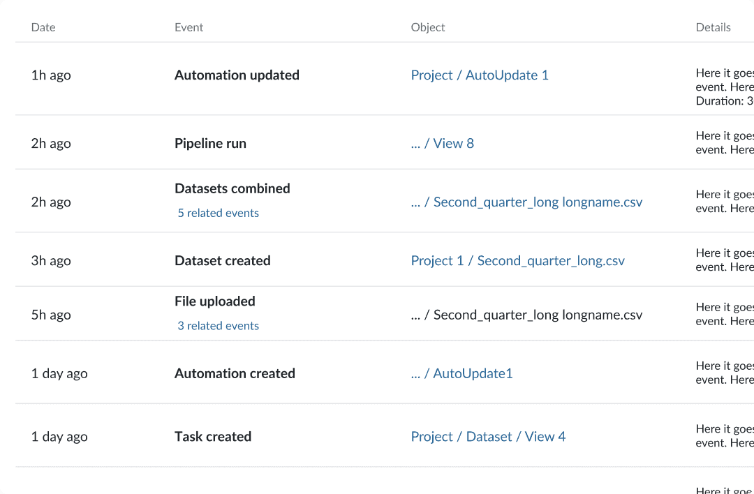 Quickly fix dirty data with deduplication, value filling, and standardization.